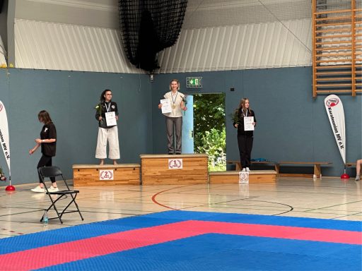 Jette und Sandra traten je in 2 Kategorien an. Jette belegte bei den Mädchen unter 5-6 Jahre bis 6 Kyu den 1.Rang. Sandra konnte in den Wettbewerben 18-35 und 35-44 Jahren das Podium besteigen.
